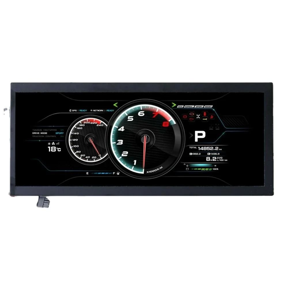 12.3 inch bar type tft lcd, 1920RGBX720 pixels, 1000 nits high brightness that is suitable for outdoor and automotive application.This 12.3 inch bar type TFT display are wide and with a narrow height. This unusual display format enables your display contentto attracts more attention from potential customers.